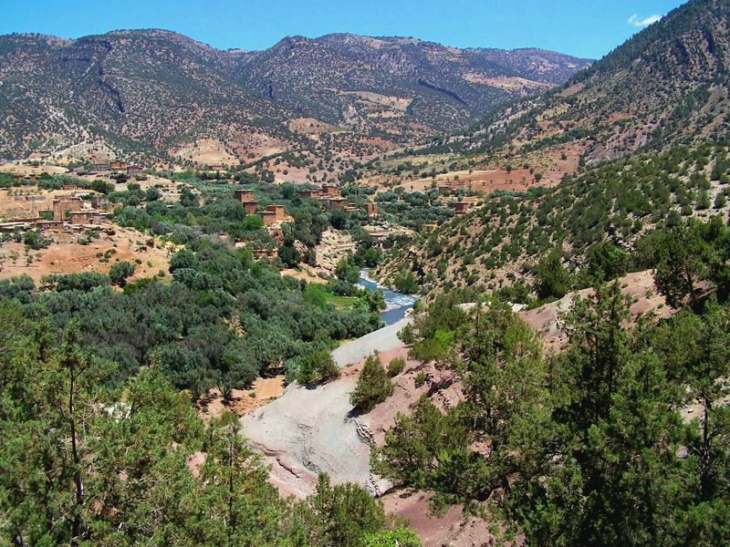 Après le petit-déjeuner, nous partons, par une piste pour rejoindre l’oued assécher d’Assem souq, en traversant le village pour se retrouver de nouveau avec nos véhicules, et départ sur Marrakech. 2h30 de marche, 4h de route