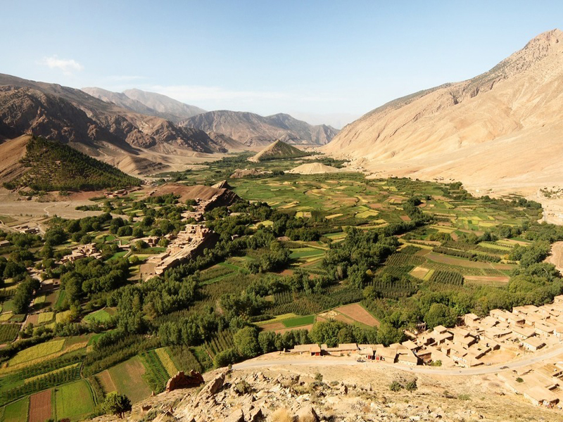 Randonnée dans la vallée d’Ouzirimte traversant des villages en pisé, des cultures en terrasse – si vous le souhaitez, vous pourrez boire le thé chez l’habitant - diner et nuit à Imini-Irkht.